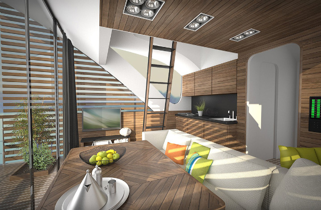 La casa galleggiante si avvale di tecnologia all’avanguardia e ad alta sostenibilità. Essa è altamente ecofriendly ed è dotata di sistemi di risparmio energetico e elettrodomestici ad alta efficienza.